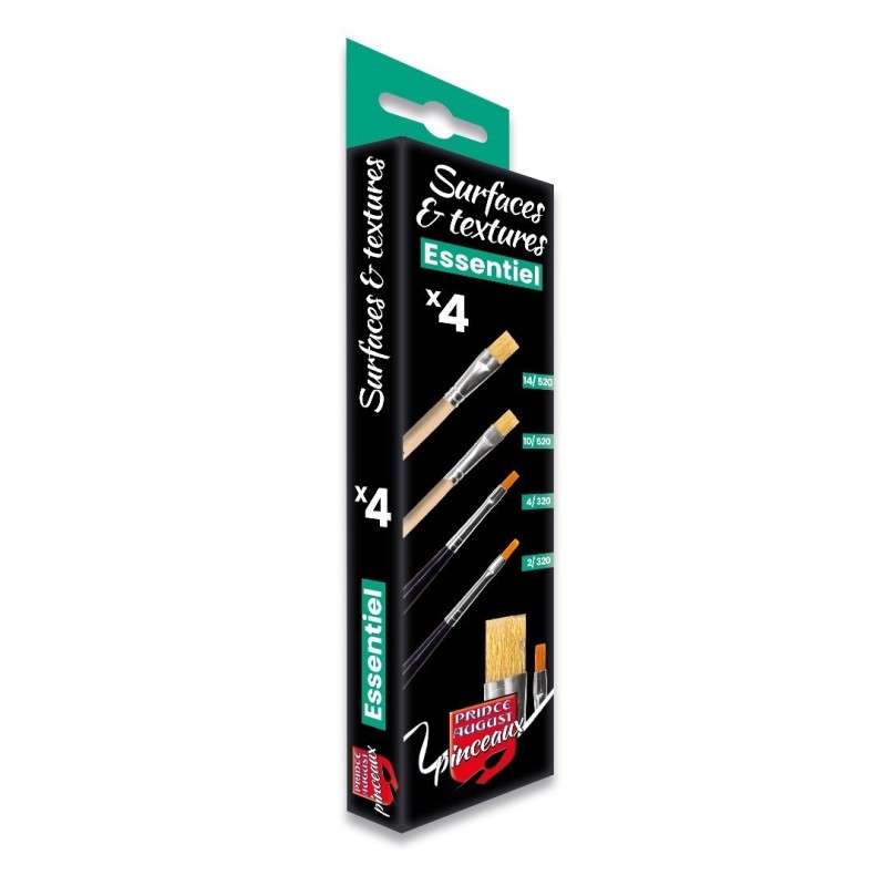 Le set Surfaces & Textures CPE3 réunit 4 pinceaux plats conçus pour travailler rapidement les grandes zones et apporter de la matière à vos textures. Idéal pour les aplats, les décors, les véhicules, ou toute surface qui demande de la régularité et du contrôle.